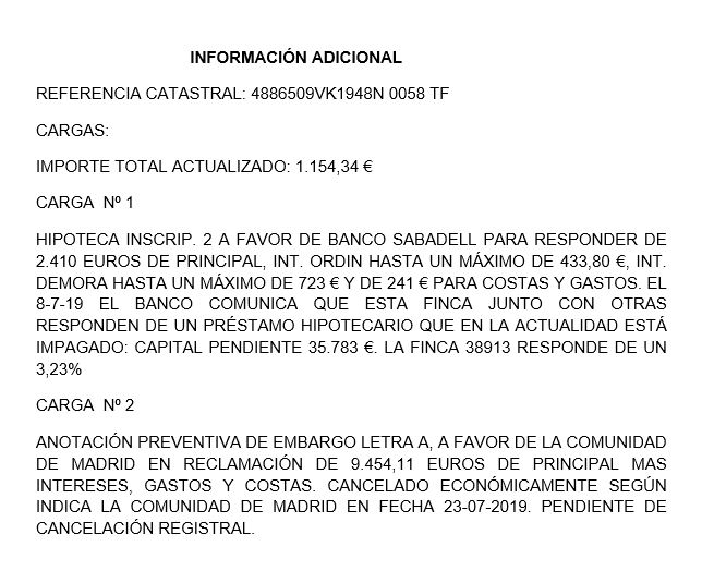 Está valorado en 2.372,54 € y presenta cargas por 1.154,34 €