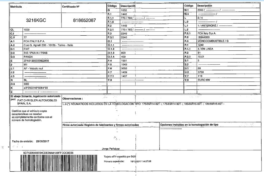 TURISMO NACIONAL/IMPORTAC 3216KGC FIAT PANDA