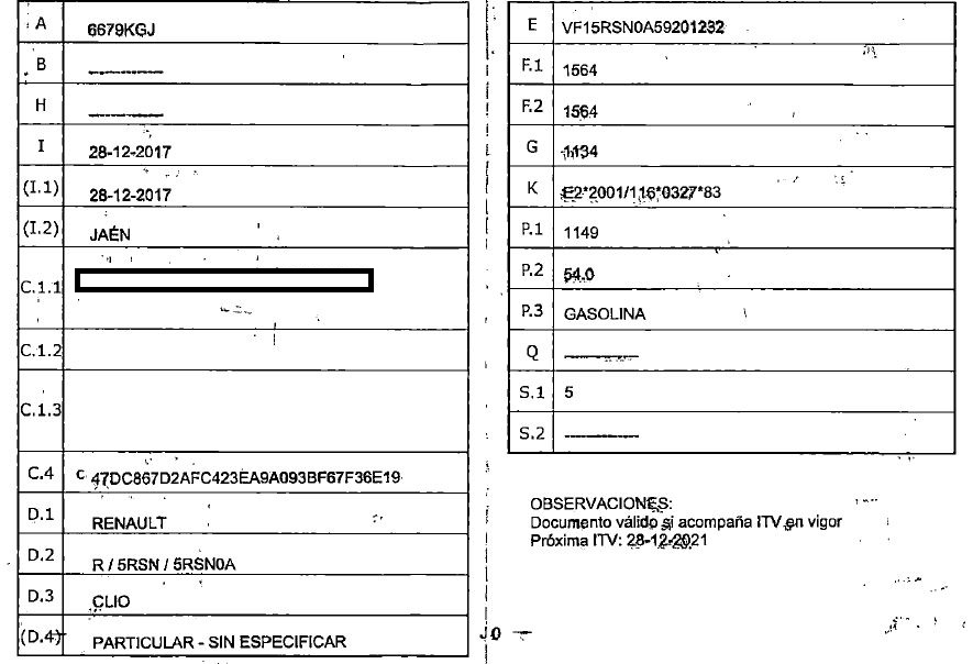 - Depositario: Antonio Hornos Bueno, Nave en Camino de Villardompardo S/N en Torredonjimeno (Jaén). Tlfno: 607335781. - Datos disponibles: Gasolina, 14.011 Kilómetros, documentación según fotografías, consta llave.