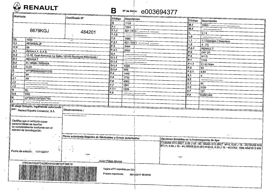 TURISMO NACIONAL/IMPORTAC 6679KGJ RENAULT CLIO