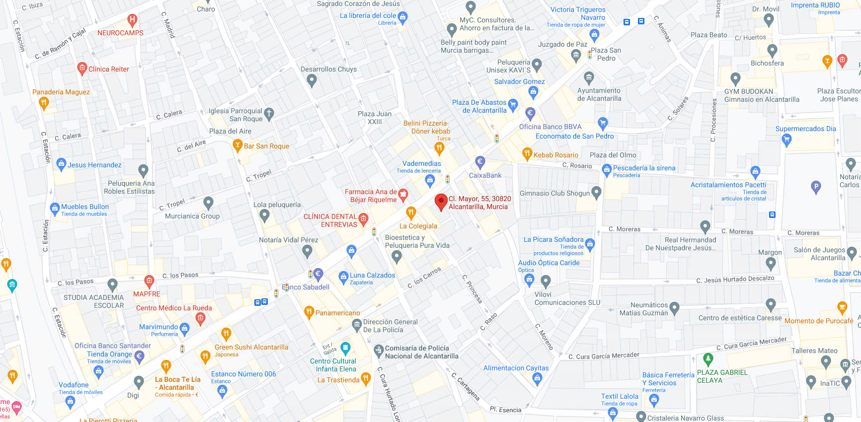 URBANA.- DOS.- LOCAL EN PRIMERA PLANTA O ENTRESUELO DE LA CASA O EDIFICIO SITO EN EL TERMINO DE ALCANTARILLA, HOY SITUADO EN LA CALLE MAYOR, SEÑALADO CON EL NUMERO CINCUENTA Y CINCO DE POLICIA, DESTINADO A OFICINAS QUE TIENE UNA SUPERFICIE CONSTRUIDA DE NOVENTA Y DOS METROS, CINCO DECIMETROS CUADRADOS. CUOTA . DIEZ ENTEROS POR CIENTO. RC:7242408XH5074C0003JP.