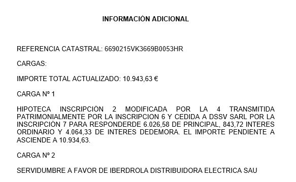 Cargas que afectan al bien: Existe más información en imágenes-anexo CARGAS. Las cargas (10.365,68 €) y gravámenes quedarán subsistentes sin aplicar a su extinción el precio del remate.