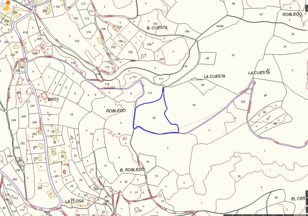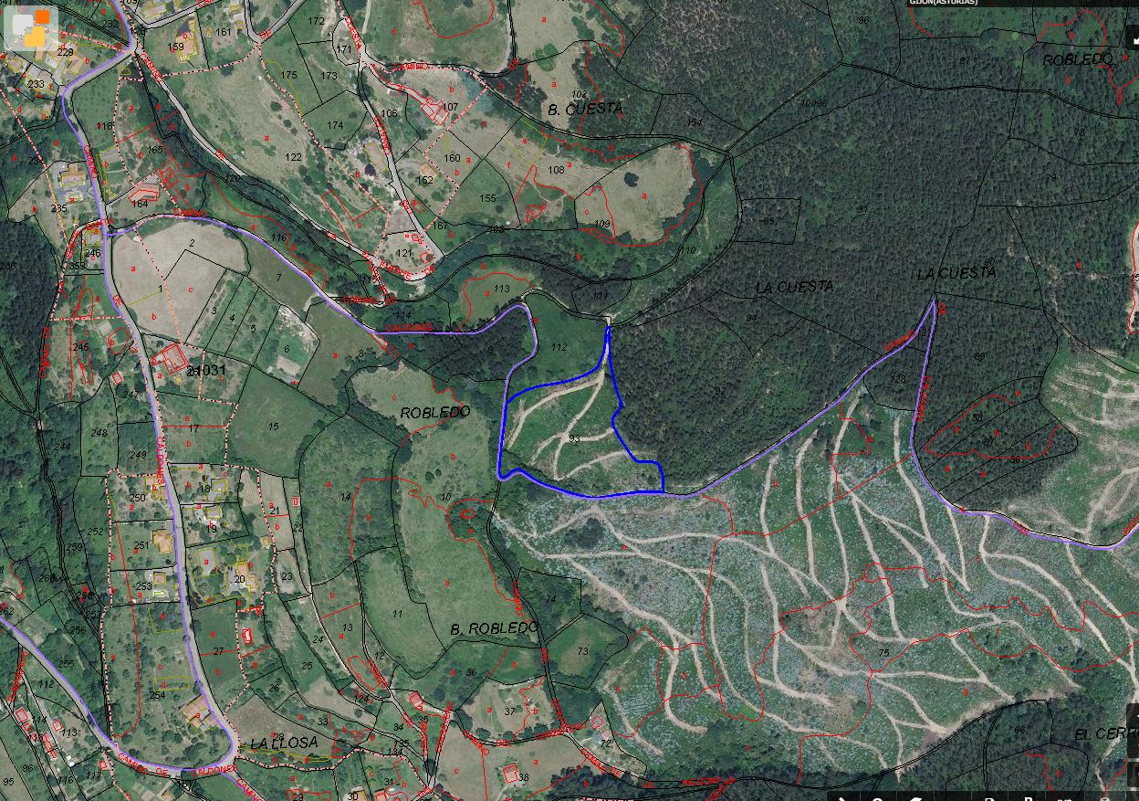 RÚSTICA: FINCA DESTINADA A VEGETACIÓN FORESTAL LLAMADA CIERRO DE LOS CARBAYOS Y LA MATA , Y TAMBIÉN DERRIBA DEL MONTE , CERRADA SOBRE SÍ, SITA EN ROBLEDO, PARROQUIA DE CALDONES, CONCEJO DE GIJÓN. MIDE 127,45 ÁREAS (12.448 M2 DE SUPERFICIE GRÁFICA CATASTRAL). ES LA PARCELA 93 DEL POLÍGONO 92.