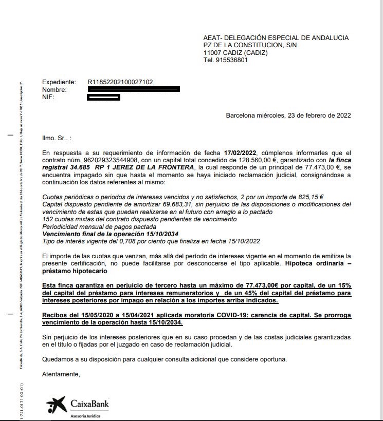 - Cargas preferentes: a) Hipoteca a favor de Caja de Ahorros Provincial San Fernando de Sevilla y Jerez (inscripción 7ª, modificada por las inscripciones 11ª y 12ª), con importe pendiente conforme respuesta remitida por la entidad financiera con fecha 23-02-2022 de 70.508,46 euros. El adjudicatario deberá hacer frente a los intereses que se devenguen y que se encuentren pendientes. b) Hipoteca a favor de Caja de Ahorros Provincial San Fernando de Huelva. Jerez y Sevilla (inscripción 9ª, modificada por la inscripción 10ª), con importe pendiente conforme respuesta remitida por la entidad financiera con fecha 23-02-2022 de 30.721,08 euros. El adjudicatario deberá hacer frente a los intereses que se devenguen y que se encuentren pendientes. c) Embargo a favor de tercero (letra D, prorrogada en letra F y letra H), con importe pendiente conforme respuesta remitida por la entidad financiera con fecha 11-05-2021 de 11.552,53 euros. Existen discrepancias entre la inform. registral y catastral