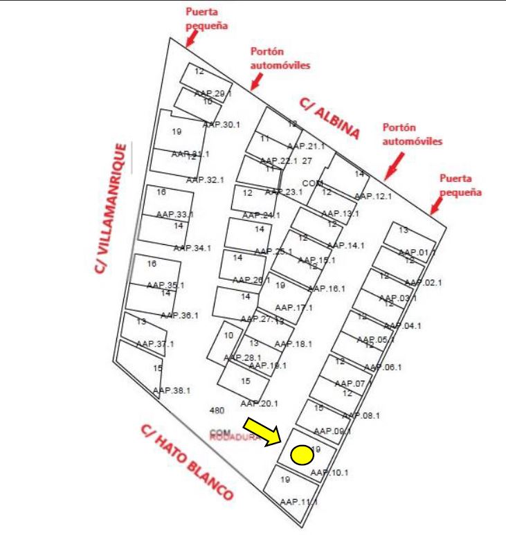 URBANA. DIEZ. PLAZA DE GARAJE SEÑALADA CON EL NÚMERO DIEZ EN LA PLANTA SÓTANO DEL EDIFICIO A, CON UNA SUPERFICIE CONSTRUIDA DE TREINTA Y SIETE CON DIECINUEVE METROS CUADRADOS Y ÚTIL DE DIECIOCHO CON OCHENTA Y DOS METROS CUADRADOS. LINDA: POR SU FRENTE ZONA COMÚN DE RODADURA Y CIRCULACIÓN DE VEHÍCULOS DERECHA ENTRANDO, PLAZA DE GARAJE ONCE IZQUIERDA PLAZA DE GARAJE NUEVE Y FONDO, FINCA DE MANUEL CORDERO. CUOTA: LE CORRESPONDE UNA CUOTA EN RELACIÓN AL SÓTANO EN QUE ESTÁ SITUADA DE 3,70 POR CIENTO Y EN RELACIÓN AL VALOR TOTAL DEL EDIFICIO DE 0,90 POR CIENTO.