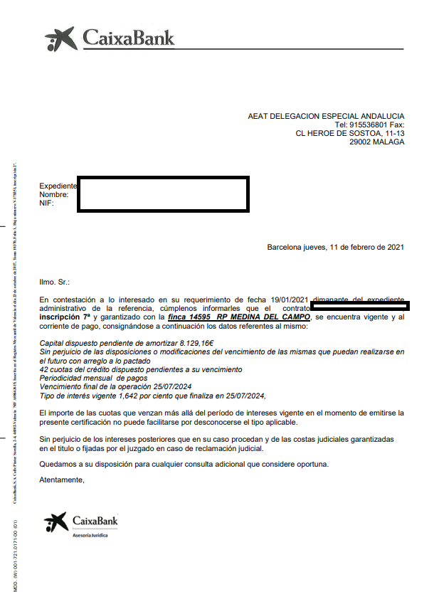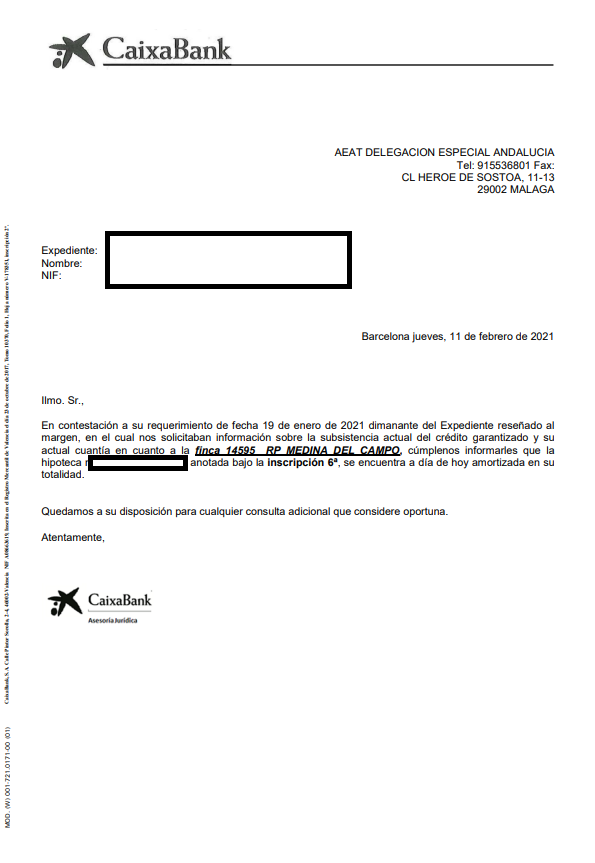 1- Hipoteca a favor de Caja de Ahorros Pensiones Barcelona, inscripción 6ª de 16/08/2001, que se encuentra amortizada en su totalidad según contestación de la entidad bancaria con fecha 11/02/2021. Pendiente de cancelación registral. 2- Hipoteca a favor de Caja de Ahorros Pensiones Barcelona, inscripción 7ª de 20/08/2009, con un importe pendiente de 8.129,16 € según contestación de la entidad bancaria con fecha 11/02/2021. El adjudicatario deberá hacer frente a los intereses que se devenguen y que se encuentren pendientes. 3- Embargo a favor de la Hacienda Pública, Letra A prorrogado en Letra B, caduca pendiente de cancelación registral. 4- La finca calificada registralmente como Vivienda de Protección Oficial no está sujeta a los condicionantes legales de dicha calificación, conforme a la comunicación que se anexa como imagen. Existe discrepancias entre la información registral y catastral.