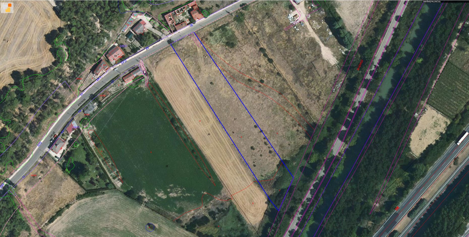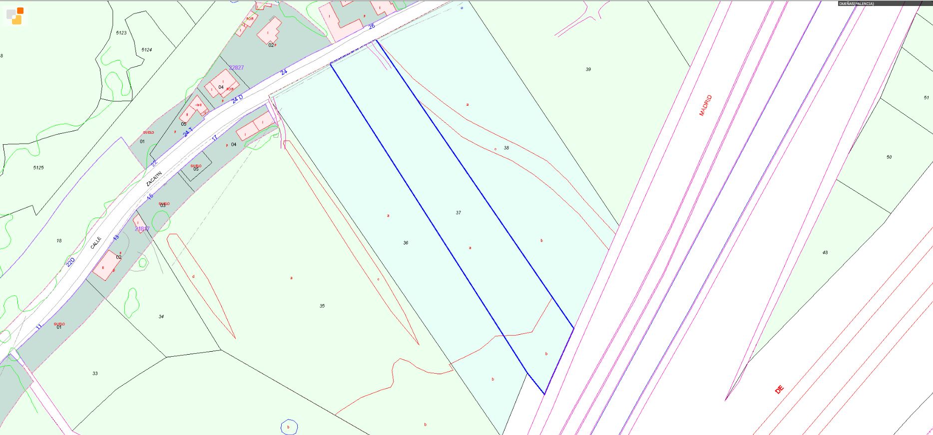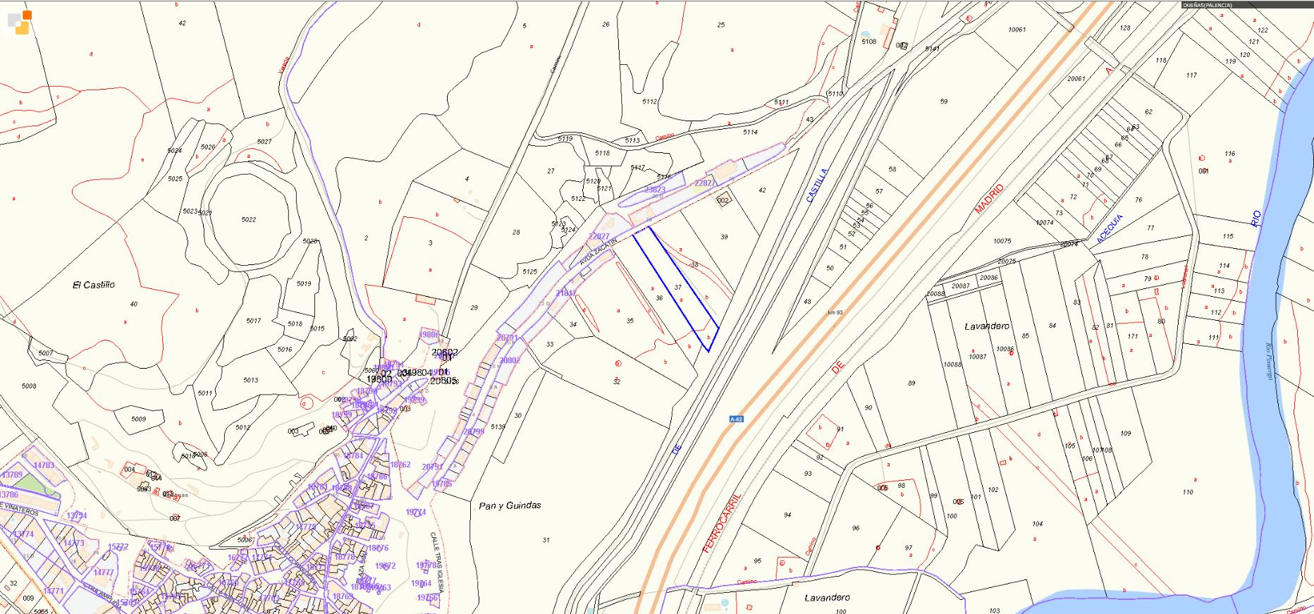 RUSTICA: TERRENO DE SECANO EN DUEÑAS, AL SITIO DE PAN Y GUINDAS. PARCELA Nº 37 DE LA HOJA 2 DEL PLANO. LINDA CON LA FINCA Nº 38 DE PILAR COS SUR, CON LA Nº 36 DE ENCARNACIÓN CARPINTERO ESTE, CON FINCA EXCLUIDA DE CONCENTRACIÓN OESTE, CON CARRETERA VIEJA. MIDE CINCUENTA Y CINCO ÁREAS, INDIVISIBLE. REFERENCIA CATASTRAL 34069A002000370000ZY.