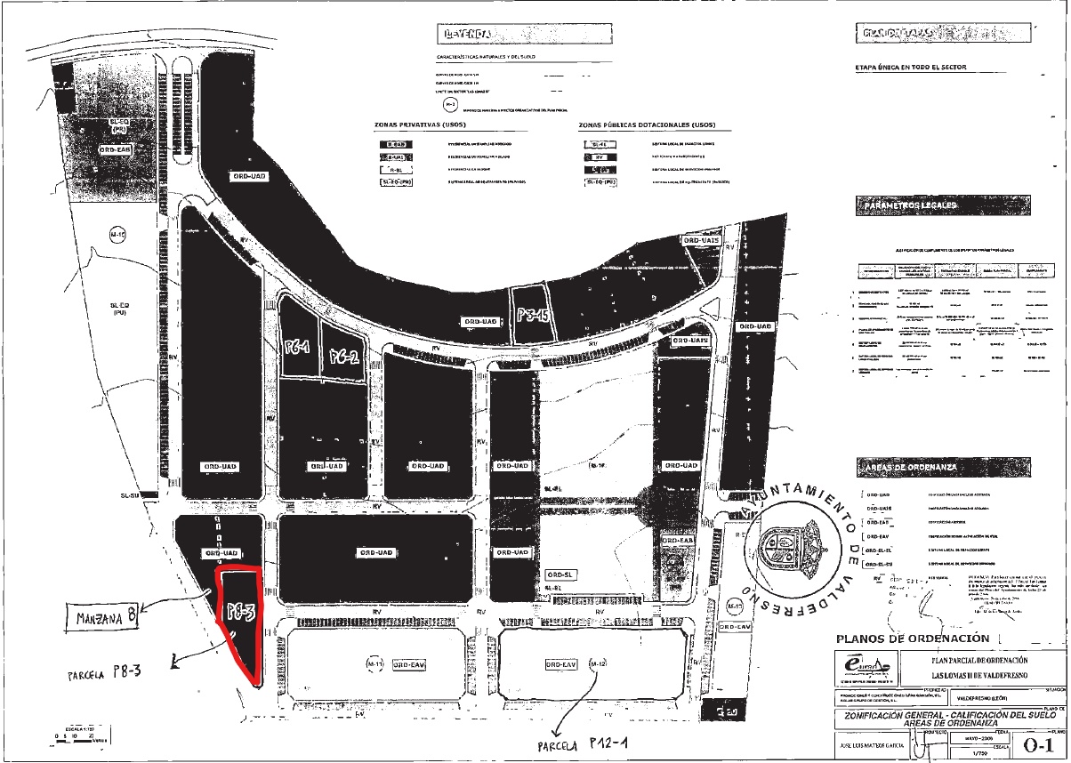 100% PLENO DOMINIO. URBANA:SOLAR.LOCALIZACIÓN:URBANIZACIÓN LAS LOMAS II P8-3. SECTOR LAS LOMAS II DE VALDEFRESNO.CUOTA:1,778386%.MANZANA 8.-PARCELA P8-3 DEL PLAN PARCIAL DE ORDENACIÓN EN SUELO NO DELIMITADO DEL SECTOR LAS LOMAS II DEL AYTO DE VALDEFRESNO. USO:RESIDENCIAL.APROVECHAMIENTO:862, 22M2.Nº DE VIVIENDAS:5.FINCAS APORTADAS:1,2 Y 3DEL PROYECTO,O REGISTRALES NºS12.352,12.351 Y 8.586 DE DICHO AYUNTAMIENTO.SUPERFICIES:TERRENO: 1170,30M2.LINDEROS:NORTE,LINEA RECTA DELIMITANDO CON EL VIAL,SUR,EMPALME DE LAS DOS LINEAS RECTAS,ESTE,VIAL,OESTE, EN LINEA QUEBRADA VIAL DE LA URBANIZACIÓN Y PARCELA P8-1. NO TIENE REF.CATASTRAL PROPIA. PARCELA INCLUIDA EN LA REF. CATASTRAL: 24178A523001220000BS.