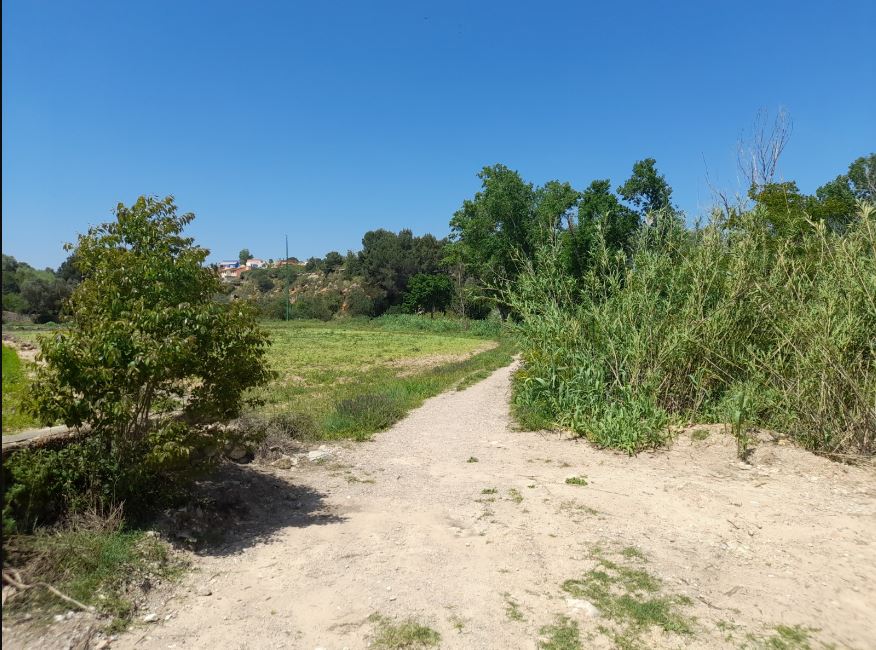 RUSTICA: LA TOTALIDAD DEL PLENO DOMINIO DE UN CAMPO DE TIERRA PLANTADO DE NARANJOS CON RIEGO DE NORIA, EN TÉRMINO DE RIBARROJA, PARTIDA DE VALENCIA LA VELLA, QUE TIENE UNA SUPERFICIE DE ONCE ÁREAS Y SESENTA Y SEIS CENTIÁREAS SEGÚN RECIENTE MEDICIÓN, SI BIEN SÓLO ESTÁ INSCRITA EN CUANTO A LA CABIDA DE CUATRO ÁREAS Y SETENTA Y TRES CENTIÁREAS, SUSPENDIÉNDOSE EL EXCESO DE CABIDA CONSISTENTE EN SEIS ÁREAS, NOVENTA Y TRES CENTIÁREAS POR NO ACREDITARSE DEBIDAMENTE, LINDA: AL NORTE, CONFEDERACIÓN HIDROGRÁFICA DEL JUCAR SUR, DE AMALIA FORTEA TARAZONA, CAMINO EN MEDIO ESTE, LA PARCELA 75 DEL VECINO CUYO NOMBRE SE IGNORA Y ESTE, LA PARCELA 18 DE DON JUAN ANDRES LUJÁN FENECH. SEGÚN EL TITULO LINDABA: AL NOTE, RIO TURIA SUR, CAMINO ESTE, AMALIA
