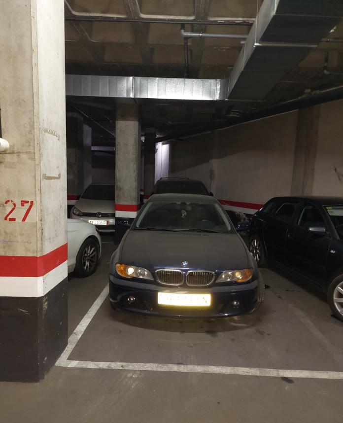 100% PLENO DOMINIO.URBANA: NUMERO 67.- PLAZA DE APARCAMIENTO NUMERO 27 DE LA PLANTA SOTANO-UNO DEL EDIFICIO SOBRE LA PARCELA NUMERO B-3-A Y B-3-B , EN TERMINO MUNICIPAL DE MADRID, DISTRITO ONCE-CARABANCHEL, HOY POLIGONO TAMAMES-AGUACATE, CALLE SECOYA, ACTUALMENTE NUMEROS 29 Y 31, ANTES 16 Y 17. TIENE UNA SUPERFICIE, INCLUIDA EN ZONAS COMUNES DE 36,72 M2 CONSTRUIDOS, Y UTIL DE 13,75 M2, Y LINDA: POR SU FRENTE, CON ZONA O CALLE COMUN DE RODADURA POR LA IZQUIERDA ENTRANDO, CON EL GARAJE NUMERO 26 POR LA DERECHA, CON EL GARAJE NUMERO 28 Y POR EL FONDO, CON EL GARAJE NUMERO 31. CUOTA 0,42%