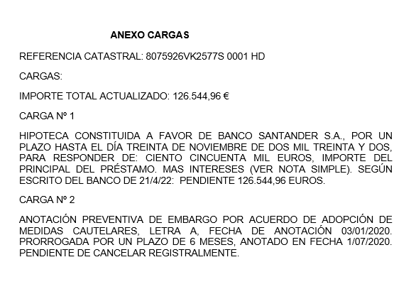 Está valorado en 147.505,04 € y presenta cargas por 126.544,96 €