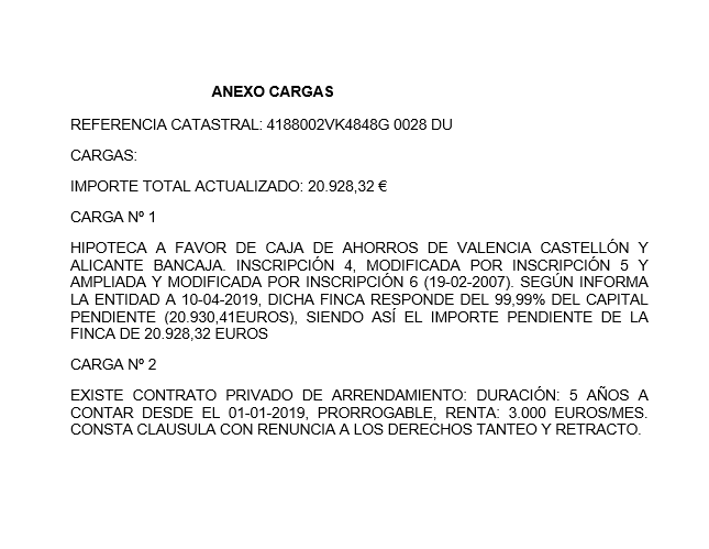 Está valorado en 22.813,48 € y presenta cargas por 20.928,32 €