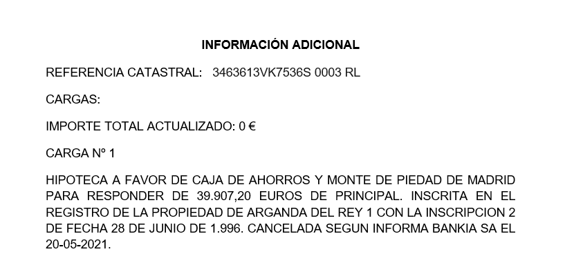 CL VEGA 19 ES:1 PL:02 PT:A 28550 TIELMES MADRID 100% (TOTALIDAD) DEL PLENO DOMINIO POR TÍTULO DE APORTACION SOCIAL.FORMALIZADA EN ESCRITURA CON FECHA 14/10/13, AUTORIZADA EN MADRID, PEDRO JOSÉ BARTOLOMÉFUENTES, Nº DE PROTOCOLO 1.806.INSCRIPCIÓN: 4ª URBANA: CÓDIGO REGISTRAL UNICO: 28076000600522. NÚMERO TRES. PISO DENOMINADO SEGUNDO A, SITUADO EN LA PLANTA SEGUNDA, SIN CONTAR LA BAJA, A LA IZQUIERDA DEL DESEMBARCO DE LA ESCALERA, DEL EDIFICIO CON ACCESO POR EL PORTAL NÚMERO UNO, SUBTIPO: VIVIENDA PISO SIN ANEJOS. TIPO DE DERECHO: PLENO DOMINIO. REF.CAT:3463613VK7536S003RL.