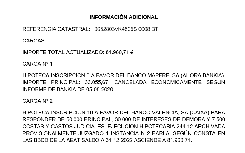 Está valorado en 12.555,84 € y presenta cargas por 81.960,71 €