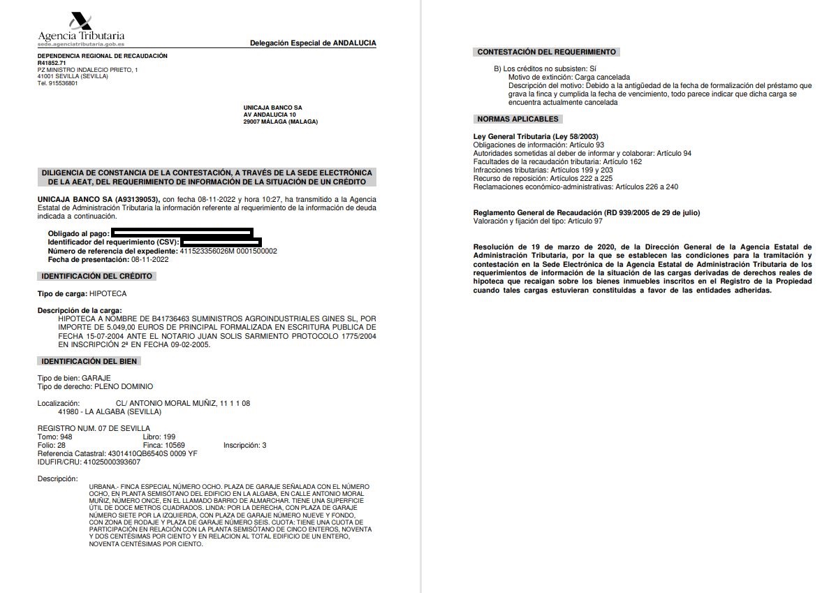 - Se enajena el 50% del pleno dominio ganancial de la finca. - Realizada la visita al inmueble en fecha 08-11-2022, éste no se encontraba ocupado. - Carga preferente: a) Hipoteca a favor de Unicaja Banco (inscripción 2ª), cancelada conforme información remitida por la entidad financiera con fecha 08-11-2022. Pendiente de cancelación registral. - Existen discrepancias entre la información registral y catastral.