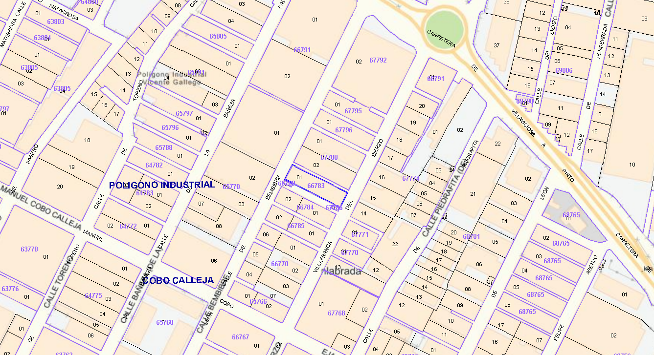 URBANA: PARCELA DE TERRENO EN FUENLABRADA EN NUM 16 DE LA CALLE VILLAFRANCA DEL BIERZO. EDIFICACIÓN DESTINADA A NAVE INDUSTRIAL DE PLANTA BAJA, DE 5M DE ALTURA DE SUS PAREDES, CON OFICINAS Y SERVICIOS. SU CONSTRUCCIÓN ES DE LADRILLO Y CEMENTO, ESTRUCTURA METÁLICA Y ESTÁ DOTADA DE LOS SERVICIOS DE LUZ, AGUA, ALCANTARILLADO O SANEAMIENTO Y PAVIMENTO DE CALLE. SU SUPERF TOTAL CONSTRUIDA ES LA DEL SOLAR, ES DECIR 1500M2. REF.CATASTRAL: 6678301VK3567N0001GD. SEGÚN CATASTRO, SUPERF. CONTRUIDA 1614 M2. PARCELA CATASTRAL 1483 M2. DIRECCIÓN CATASTRO: CL BEMBIBRE 13, 28947. FUENLABRADA. MADRID.