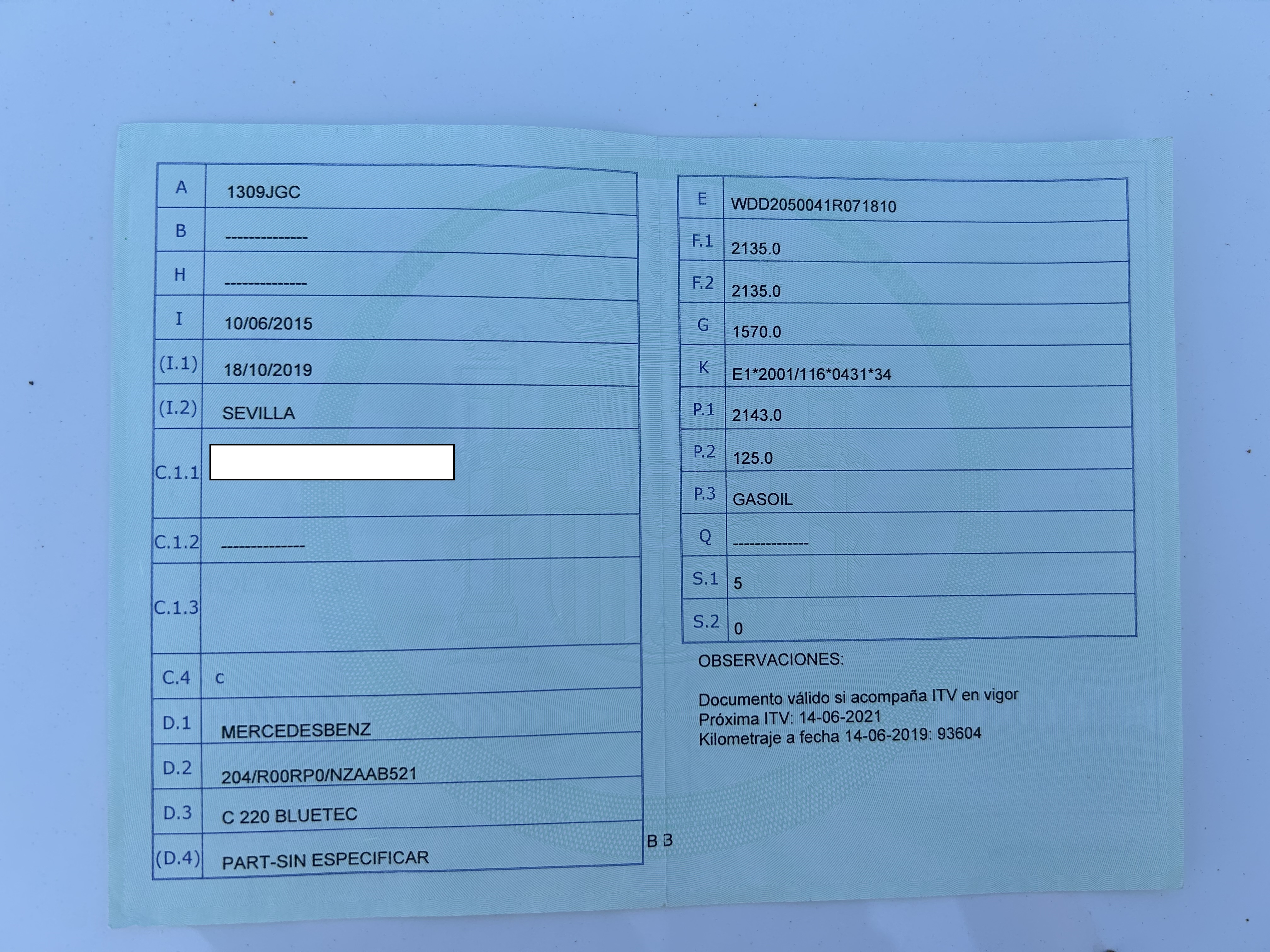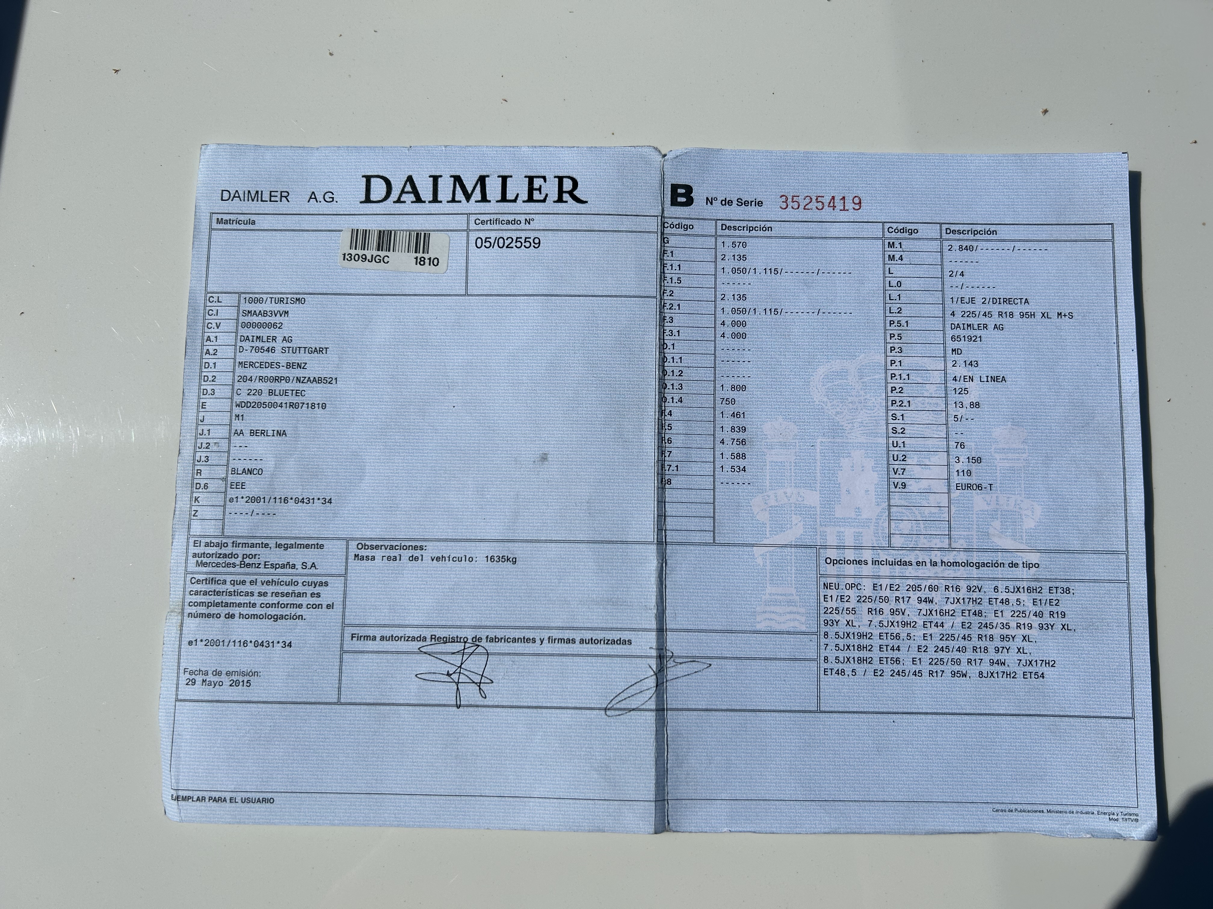 TURISMO NACIONAL/IMPORTAC 1309JGC MERCEDES-BENZ C 220 BLUETEC