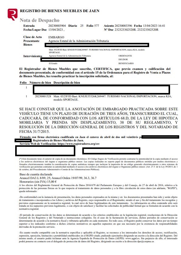Para acceder a la información oficial del BOE para esta subasta de KIA SPORTAGE en Sevilla, haz click en el botón Ver Ficha: