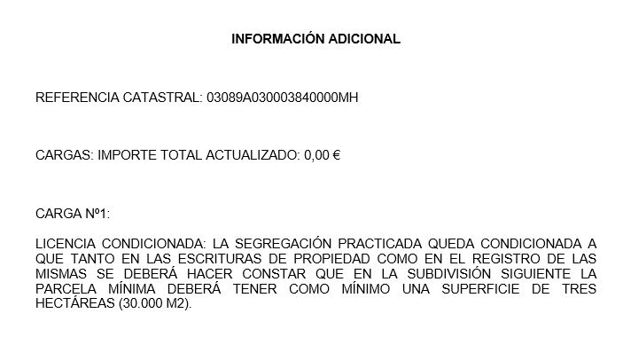 100% PLENO DOMINIO DE LA FINCA 30920. RÚSTICA. LABOR DENOMINADA DE LA ZAFRA, EN TÉRMINO MUNICIPAL DE MONÓVER, PARTIDOS DE LA ZAFRA, COLLADO DE VICTORIANO Y LA ROMANA, EN PARTE, CON UNA SUPERFICIE DE CIENTO VEINTICUATRO HECTÁREAS, SETENTA Y TRES ÁREAS, OCHENTA Y UNA CENTIÁREAS. POLÍGONO 30. PARTE DE LA PARCELA 338. SE EJECUTA POR LAS INSCRIPCIONES 2ª, 3ª Y 4ª. REFERENCIA CATASTRAL: 03089A030003840000MH. SUPERFICIE CATASTRAL: 113'1644HA