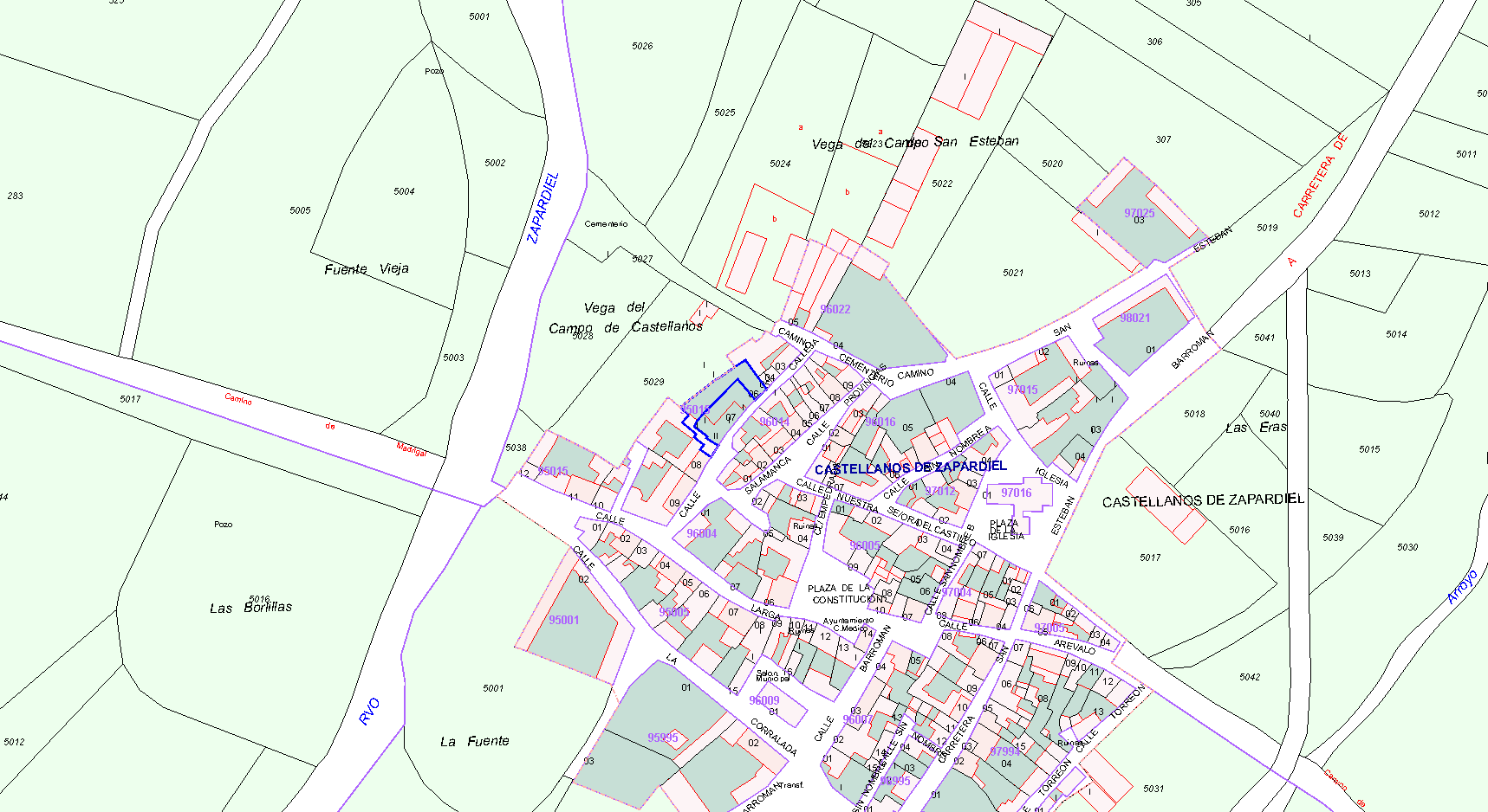100% DEL PLENO DOMINIO. CASA DE PLANTA BAJA , EN CASTELLANOS DE ZAPARDIEL, EN LA CALLE DE SALAMANCA, SIN NÚMERO,DE TRESCIENTOS METROS CUADRADOS. TIENE VARIAS HABITACIONES, DEPENDENCIAS Y CORRAL. LINDA: DERECHA, URBANA DE LA FUENTE IZQUIERDA, VICENTE GUTIERREZ FONDO, RONDA DEL PUEBLO Y FRENTE, CALLE DE SU SITUACION. REF. CAT: 9501506UL3590S0001LI