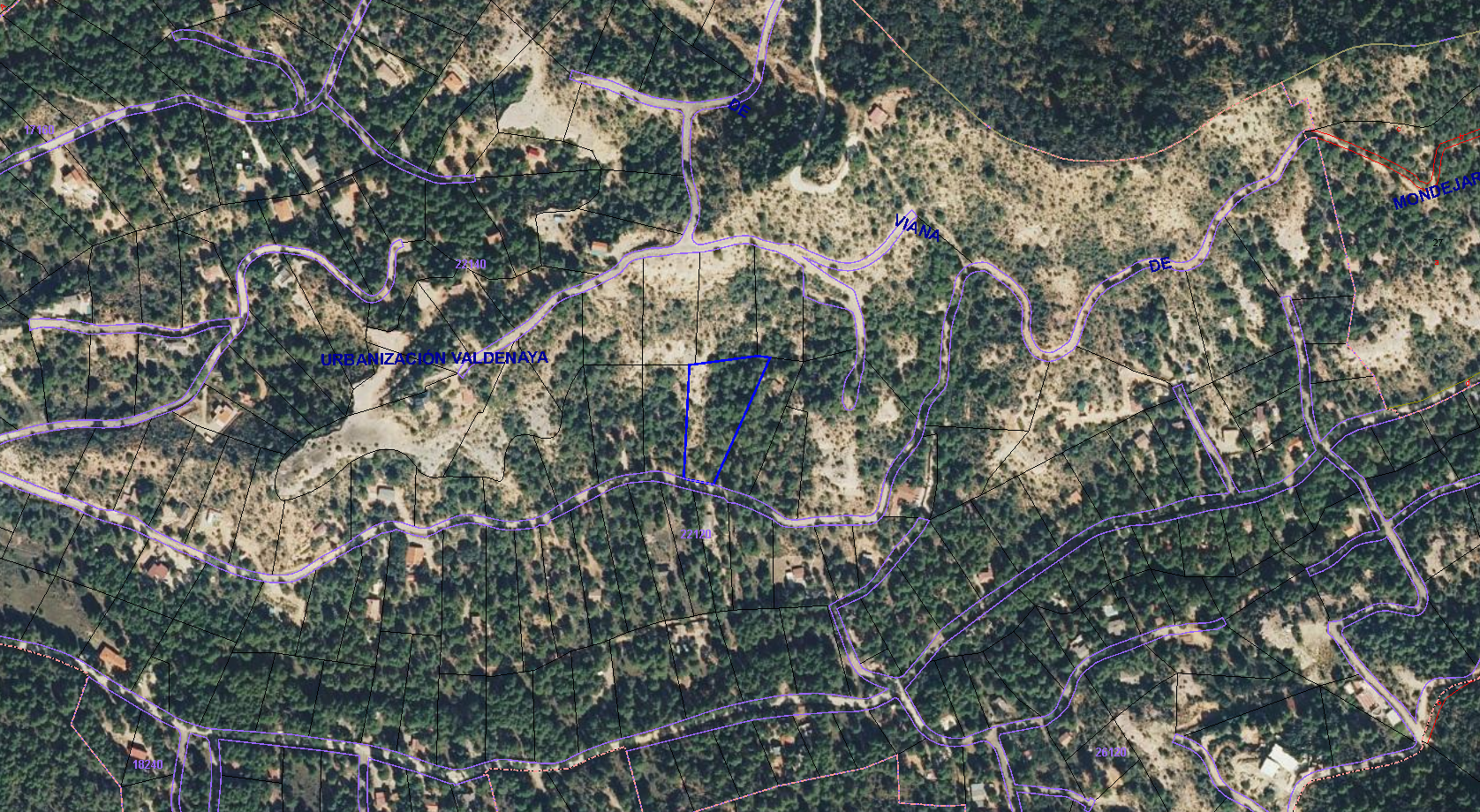 50% DEL PLENO DOMINIO: URBANA: NÚMERO CIENTO SESENTA Y CINCO.- 165. PARCELA DE TERRENO EN LA URBANIZACIÓN VALDENAYA, TÉRMINO MUNICIPAL DE VIANA DE MONDÉJAR, AGREGADO AL AYUNTAMIENTO DE TRILLO, PORCIÓN MONTE PROCEDENTE DE LA FINCA DENOMINADA LA SOLANA Y EL MESADO , CON UNA SUPERFICIE DE 4.300 M2. LINDA: FRENTE O ENTRADA, CON CALLE DE LA URBANIZACIÓN POR LA DERECHA, PARCELA NÚMERO 127 IZQUIERDA, CON LA PARCELA 126 Y POR EL FONDO, CON LAS PARCELAS 129, 142 Y 143. REFERENCIA CATASTRAL NÚMERO 2214030WL4021S0001WP.