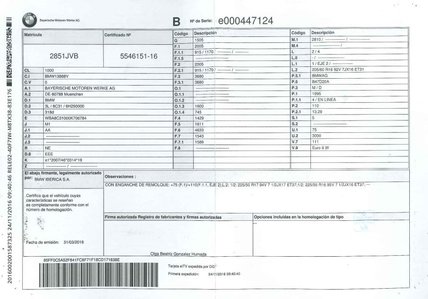- Fecha de matriculación: 24-11-2016