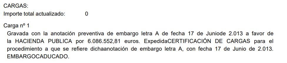 Embargo preventivo a favor de la AEAT, anotación letra A, prorrogada por la letra B y por la letra C: CADUCADO, PENDIENTE DE CANCELACION REGISTRAL.