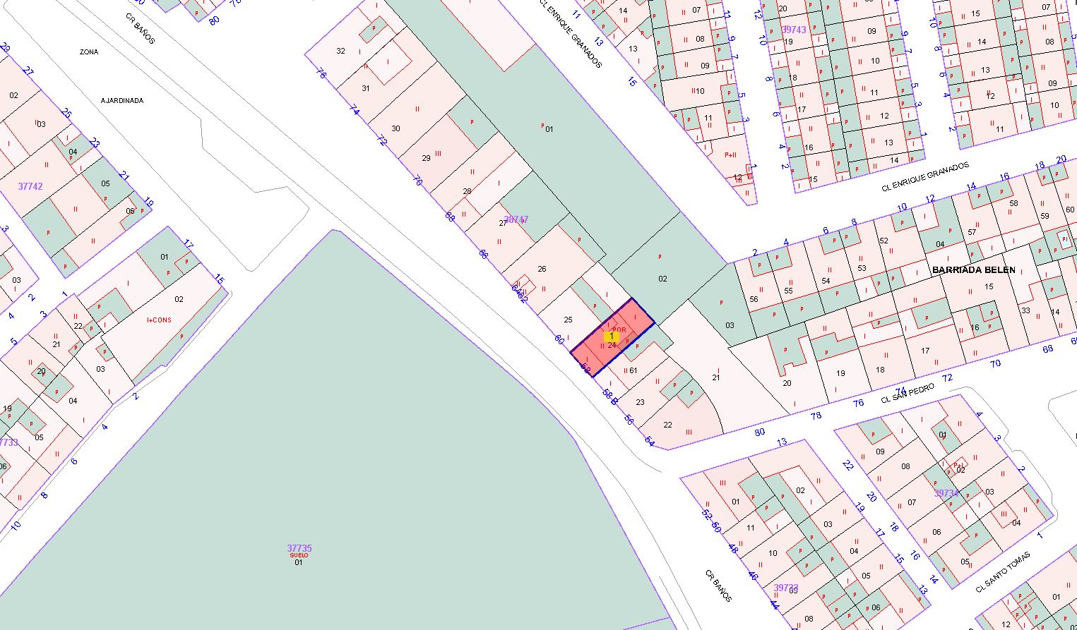 100% PLENO DOMINIO. URBANA: CASA MARCADA CON EL Nº 6, HOY 58 DE LA CARRETERA DE BAÑOS. TIENE DE FRENTE SIETE METROS VEINTICUATRO CENTÍMETROS Y UNA SUPERFICIE SOLAR DE 131,44 M2, DE LOS QUE EL 74,94% OCUPADO POR LA EDIFICACIÓN, ESTANDO EL RESTO DESTINADO A PATIO. CONSTA SOLO DE PLANTA BAJA. LINDEROS: DCHA. ENTRANDO, CON FINCA SEGREGADA IZQ, CON OTRA DE NICOLÁS OLIVARES, HOY Nº 60 DE C/ CARRETERA DE BAÑOS Y ESPALDA, CON CORRALES DE CASA DE DOLORES OYONARTE.