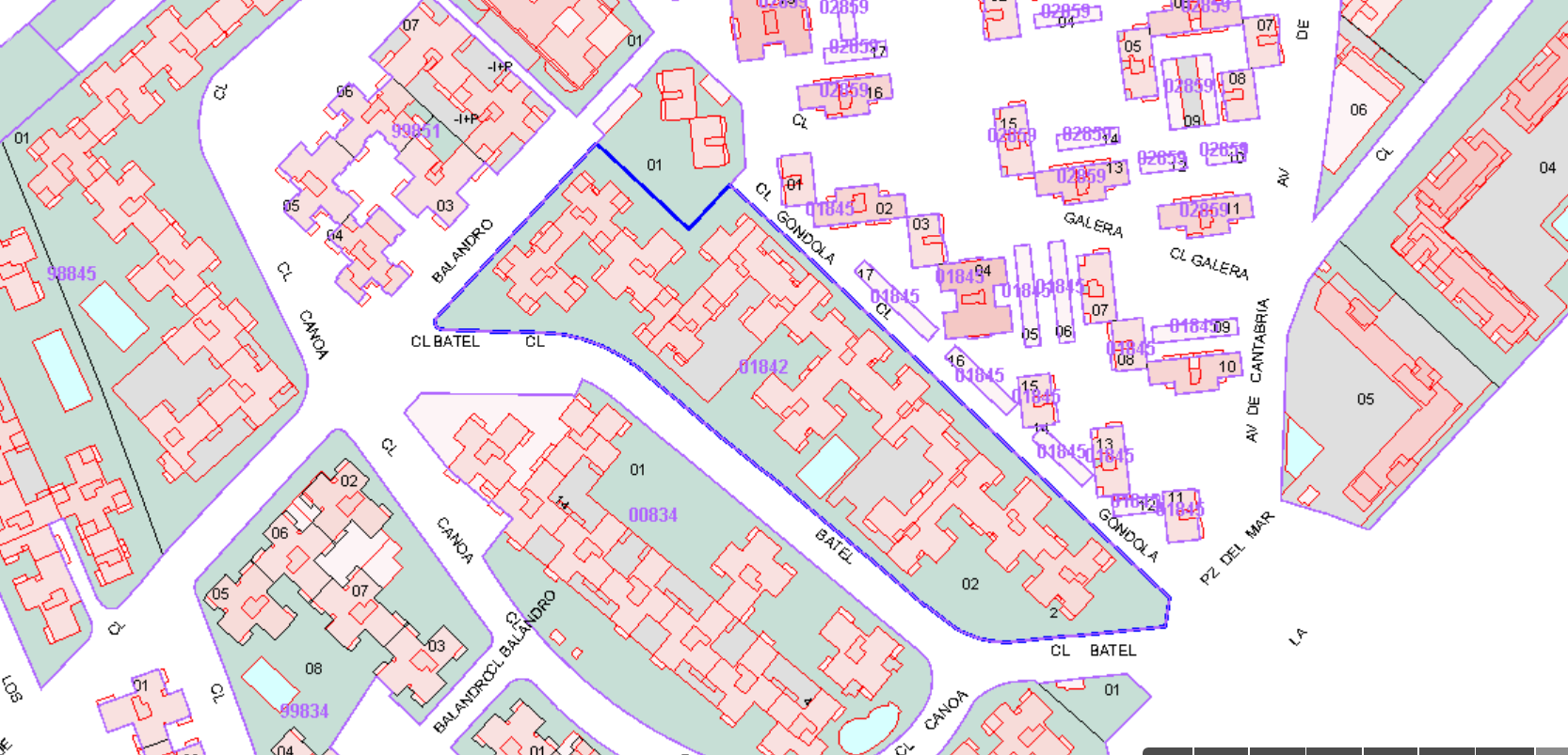 SE ENAJENA 13/784 PARTES INDIVISAS DEL PLENO DOMINIO DE LA FINCA 2250 , QUE CORRESPONDE CON EL 46,43% DEL DERECHO DE USO DE LA PLAZA DE GARAJE 59 LOCAL SITUADO EN PLANTA SÓTANO DE EDIFICIO EN LA CIUDAD RESIDENCIAL PARQUELUZ, MANZANA B, CASA NÚMERO 95, SITA EN CALLE BATEL Nº 10 DE MADRID. OCUPA UNA SUPERFICIE DE CUATROCIENTOS DIECIOCHO METROS CUADRADOS, QUE COINCIDE CON LA DE LOS BRAZOS ORIENTADOS AL NOROESTE, SURESTE Y PARTE DEL SUROESTE DE LA CRUZ QUE FORMA EL SOLAR Y QUE EN UNIÓN DE LOS LOCALES EN PLANTA DE SÓTANO DE LOS BLOQUES 103 Y 104, NUMEROS 11 Y 13 DE LA CALLE GÓNDOLA, COMPONEN UNA UNIDAD FÍSICA DESTINADA A GARAJE.