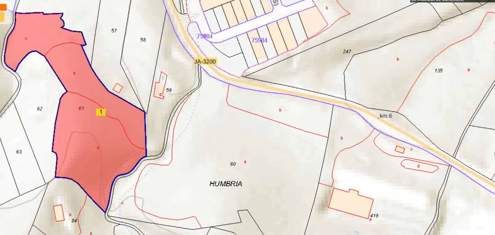 Este bien se encuentra en la siguiente dirección: PA HUMBRÍA, PLG 6 PARCELA 61, 23170, GUARDIA DE JAEN (LA), Jaén