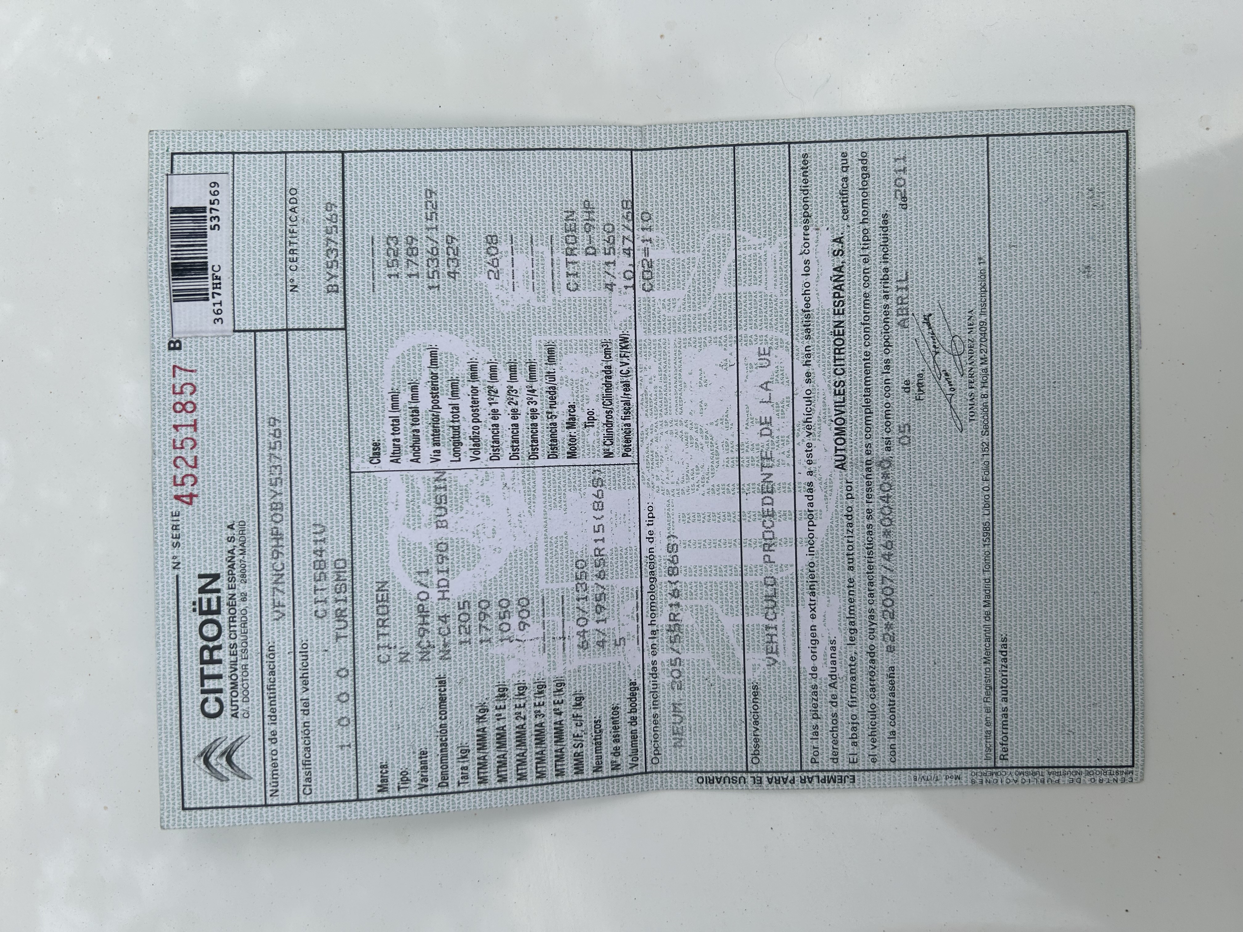 TURISMO NACIONAL/IMPORTAC 3617HFC CITROEN N-C4 HDI90 BUSIN