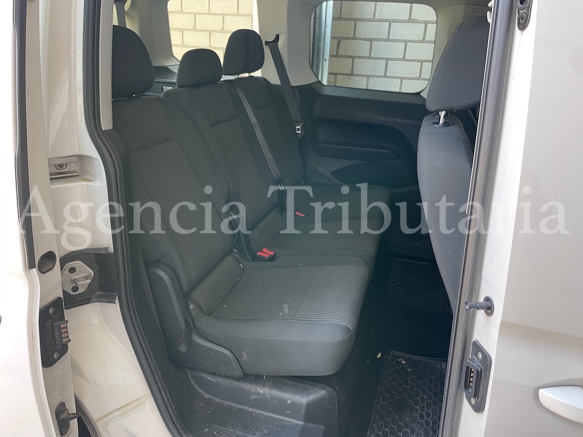 Volkswagen Caddy 2.0 TDI Combi 100cv, color blanco, diésel, matriculación 28-10-2021 único titular, 140117 km, llaves si, documentación si, caducidad ITV 28-10-2023.Climatizador, cambio manual 6 velocidades, dirección asistida, elevalunas eléctricos, cierre centralizado, espejos regulación eléctrica plegables, pantalla multimedia táctil (teléfono, radio, multimedia, computadora, vehículo, App-Connect, usuario, sonido, ayuda, ajustes, Android Auto, MirroLink, Apple CarPlay, bluetooth, etc), puertos USB, equipo de sonido integrado con control desde el volante, luces led con regulación y encendido automático, luz diurna led, comando de voz, lane assist (asistente de mantenimiento de carril), volante multifunción, control velocidad de crucero con limitador, start-stop, inserciones interiores en gris, freno de mano eléctrico y automático, control presión de neumáticos, puerta lateral corredera, lunas tintadas, tapacubos.Tasación sin revisión mecánica, ni electrónica, ni estructural