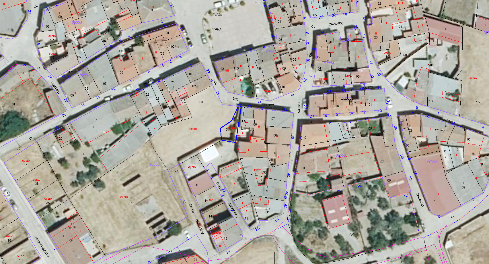 URBANA.- CORRAL EN EL PUEBLO DE EL GORDO, SITO EN LA CALLE EL SANTO, NÚMERO SEIS, QUE TIENE UNA SUPERFICIE SOLAR DE SESENTA Y UN METROS CUADRADOS Y UNA SUPERFICIE CONSTRUIDA DE VEINTICUATRO METROS CUADRADOS. LINDA POR LA DERECHA ENTRANDO CON LEANDRO GUINEA Y JAVIER GUINEA POR LA IZQUIERDA CON DIMAS DE LUCAS AL FONDO CON DIMAS DE LUIS Y AL FRENTE CON LA CALLE DE SU SITUACIÓN. SU REFERENCIA CATASTRAL ES: 9655804TK9195N0001HJ.