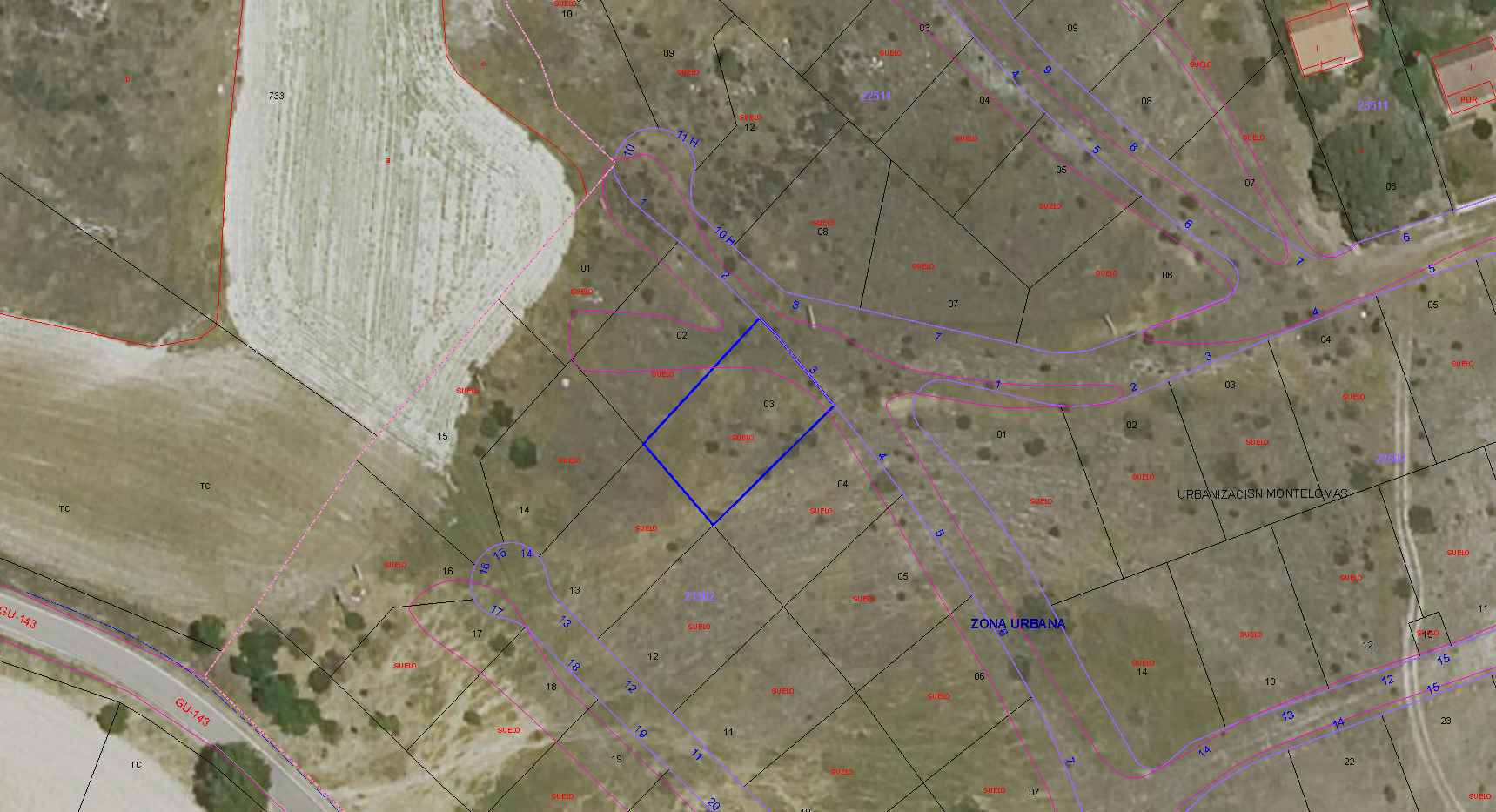 100% PLENO DOMINIO. URBANA: PARCELA 3 DE LA MANZANA I, PERTENECIENTE A LA URBANIZACIÓN MONTELOMAS, EN TÉRMINO MUNICIPAL DE COGOLLUDO (GUADALAJARA). OCUPA UNA SUPERFICIE DE QUINIENTOS UNO CON SETENTA METROS CUADRADOS. LINDA: AL NORTE, CON CALLE TRANSVERSAL NÚMERO 8 SUR, CON PARCELAS 15 Y 16 ESTE, CON PARCELA 4 Y OESTE, CON PARCELA 2.
