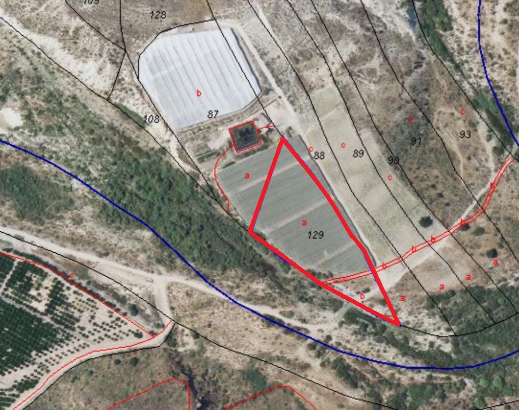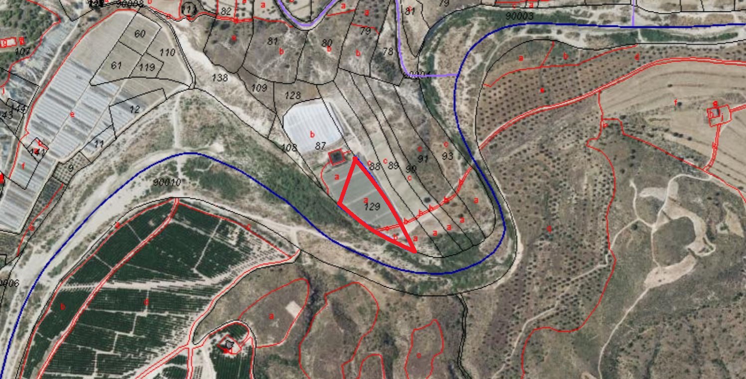 100% PLENO DOMINIO. RÚSTICA: TROZO DE TIERRA DE SECANO EN EL PARAJE INGERTOS, TÉRMINO MUNICIPAL DE LOS GALLARDOS, CON UNA SUPERFICIE DE UNA HECTÁREA, OCHO ÁREAS Y SETENTA Y TRES CENTIÁREAS, LINDANDO: NORTE, PARCELA 88 DE JOSÉ MARTÍNEZ CANO Y 87 DE SERAFÍN RIVAS MARTÍN SUR, PARCELA 90004 RÍO AGUAS DE LA CONFEDERACIÓN HIDROGRÁFICA DEL SUR ESTE, PARCELA 88 ANTES CITADA Y OESTE, PARCELA 90004 Y 87 MENCIONADAS. ES LA PARCELA 129 DEL POLÍGONO 1.
